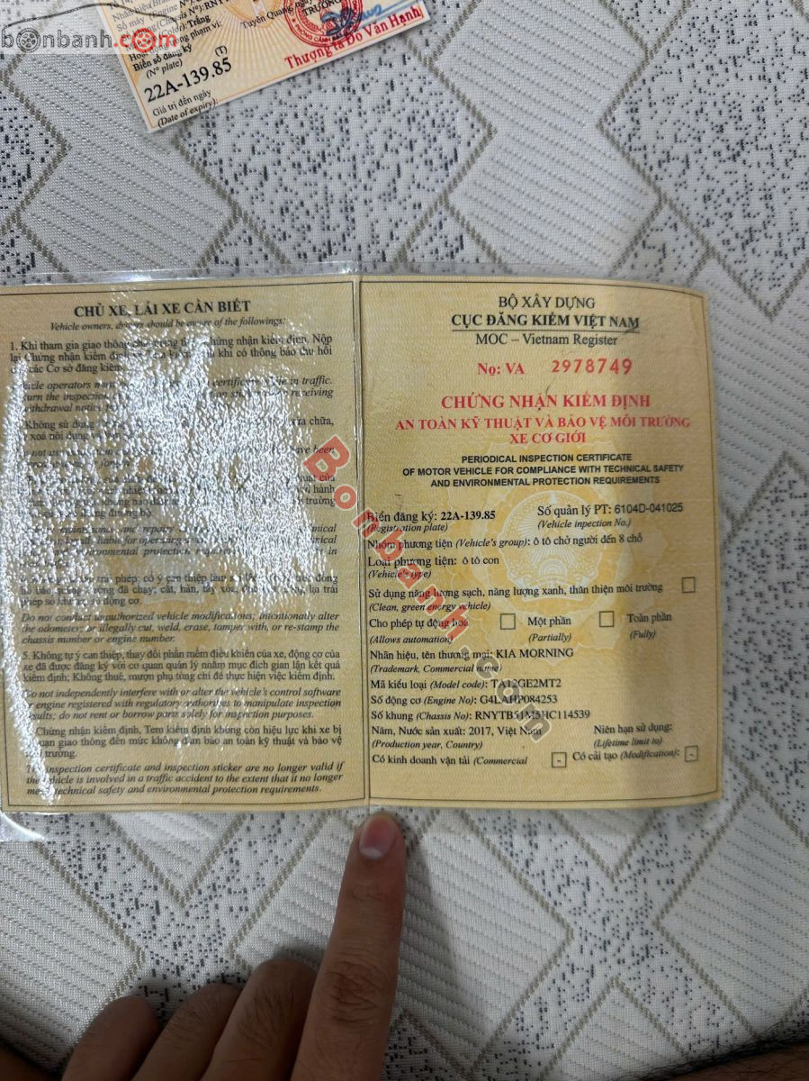Kia Morning 2017 số sàn bản đủ 4 lốp mới máy số nguyên, xe bị cây rơi vào nóc dính tí cột kính bên phụ. Giá rất hợp lý